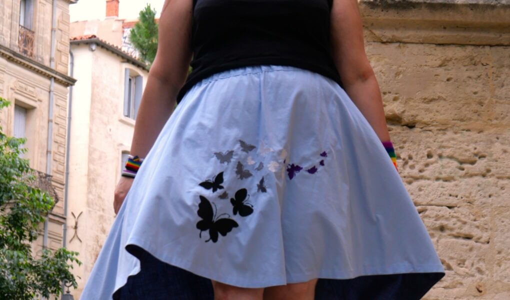 • 🤫 Fierté Ace : Une magnifique broderie de papillons aux couleurs du drapeau Asexuel. Une façon subtile et poétique d’afficher qui tu es.